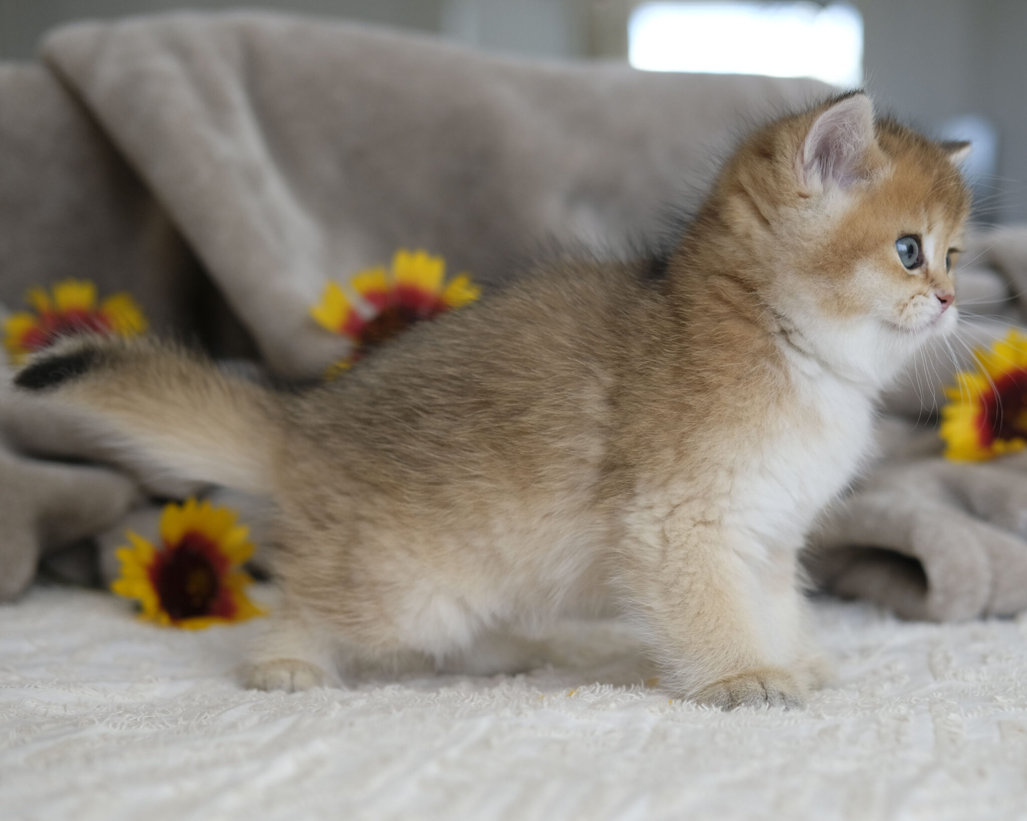 She descends from rare bloodlines and carries the signature traits that make the British Shorthair (BSH) so treasured. Her lively curiosity and sweet personality bring light and joy to everyone she meets. Raised on a balanced Royal Canin kitten diet, Juniper is healthy, energetic, and already litter-trained, ready to settle happily into her new home.
